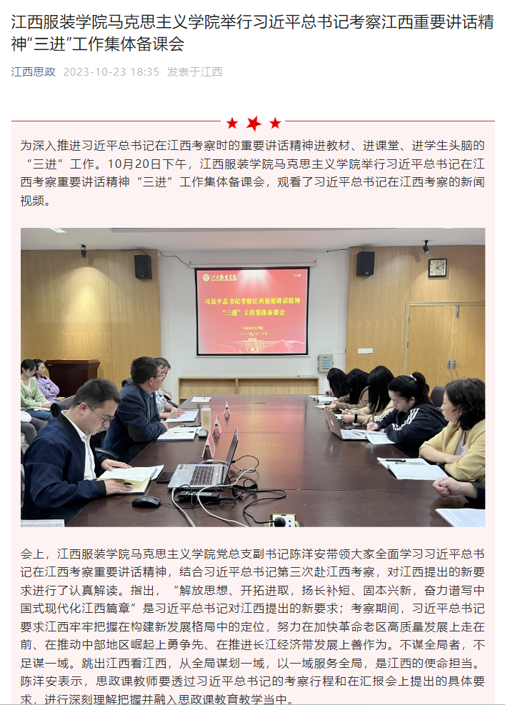 江西思政:江西服装学院马克思主义学院举行习近平总书记考察江西重要讲话精神“三进”工作集体备课会