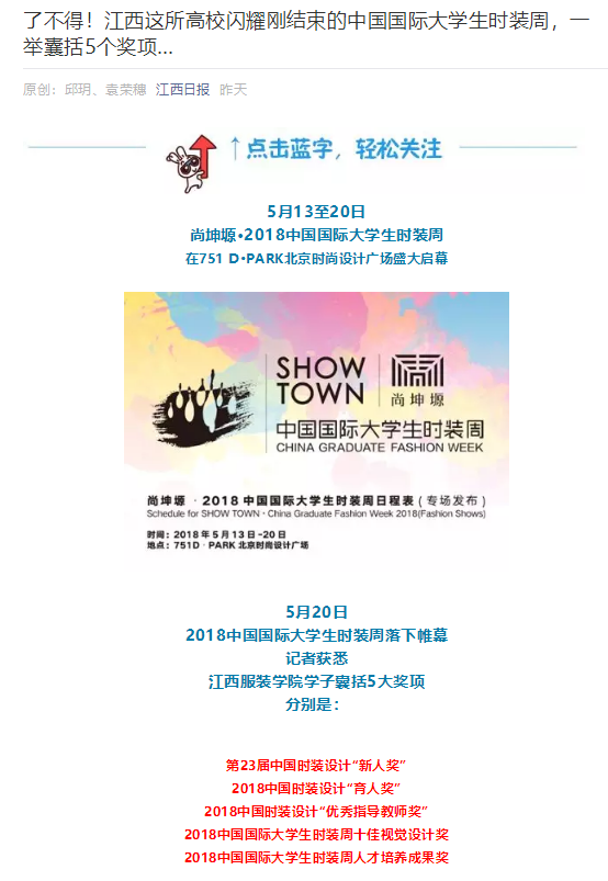 下一篇赣青团学:重磅|江西这所高校在中国国际大学生时装周夺得五项大奖!