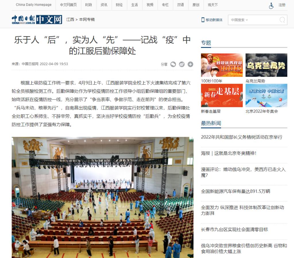 中国日报:乐于人“后”,实为人“先”——记战“疫”中的江服后勤保障处