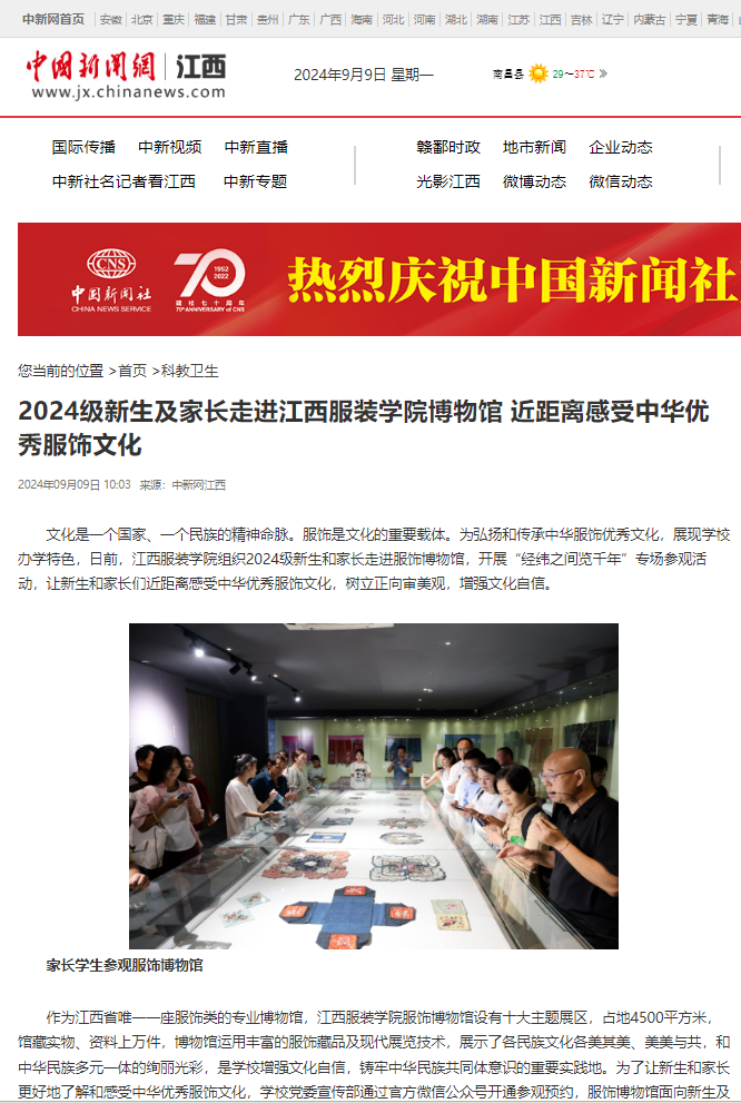 中国新闻网:2024级新生及家长走进江西服装学院博物馆 近距离感受中华优秀服饰文化