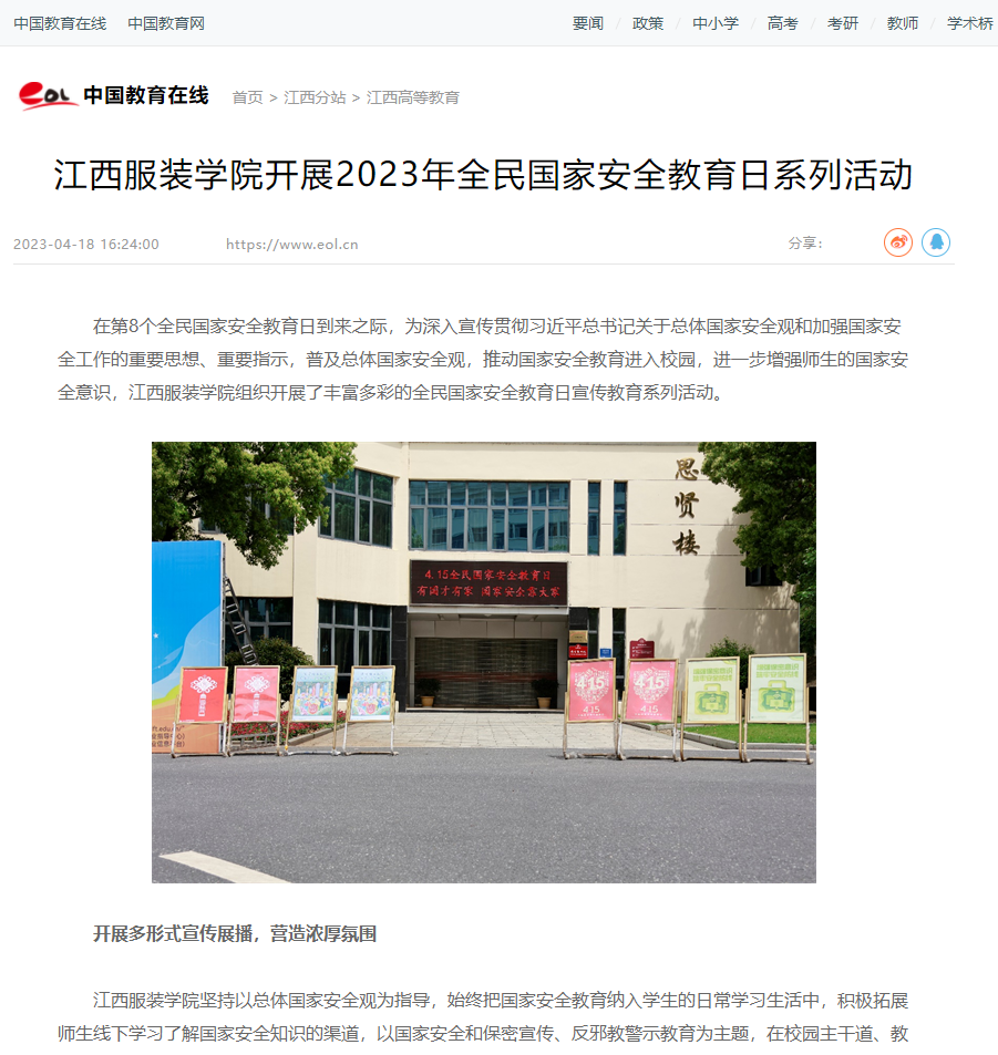 中国教育在线:江西服装学院开展2023年全民国家安全教育日系列活动