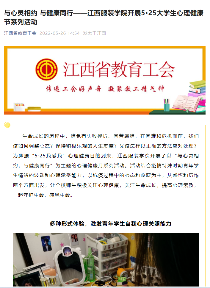 江西省教育工会:与心灵相约 与健康同行——江西服装学院开展5·25大学生心理健康节系列活动