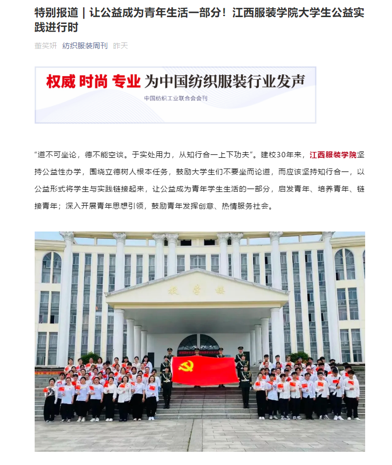 纺织服装周刊:让公益成为青年生活一部分!江西服装学院大学生公益实践进行时