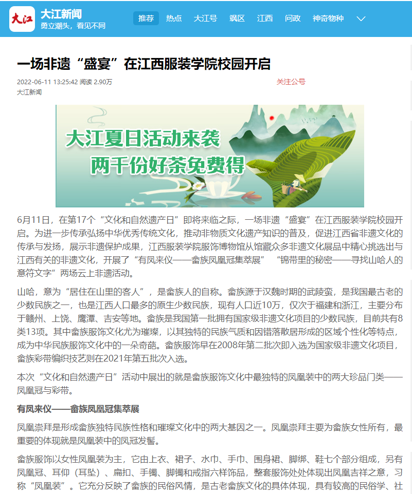 大江网:一场非遗“盛宴”在江西服装学院校园开启