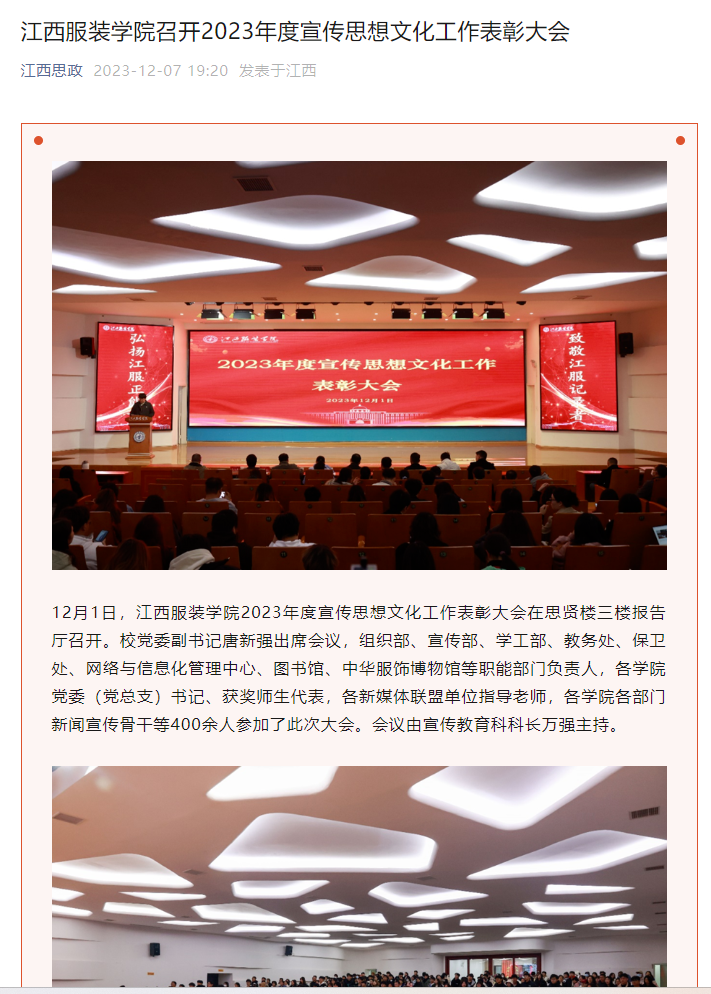 江西思政:江西服装学院召开2023年度宣传思想文化工作表彰大会