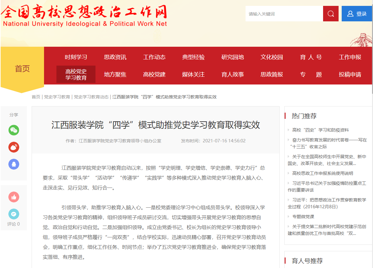 下一篇全国高校思想政治工作网:从六到一,江西服装学院推进党史学习教育走深走实