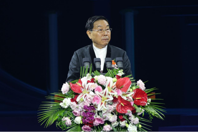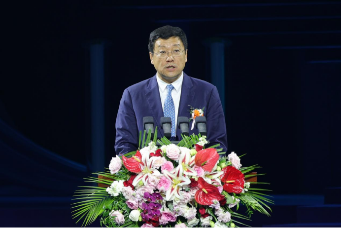 江西服装学院校长薛家宝致辞。他代表学校向各位领导、嘉宾表示热烈欢迎和衷心感谢,向长期以来关心支持学校发展的社会各界人士致以崇高的敬意。他指出,江西服装学院国际时尚艺术节,始于28年前的1996年,是延续多年的时尚交流活动,历经了从“江服杯”到“润华奖”再到“国际时尚艺术节”的蜕变,现已成为一带一路大学生演绎时尚、展示才华的舞台,成为产学研用结合,促进大学生成长成才的孵化器,同时,也是我校向国际国内时尚行业,发出江服声音、传播中华服饰文化的重要载体。