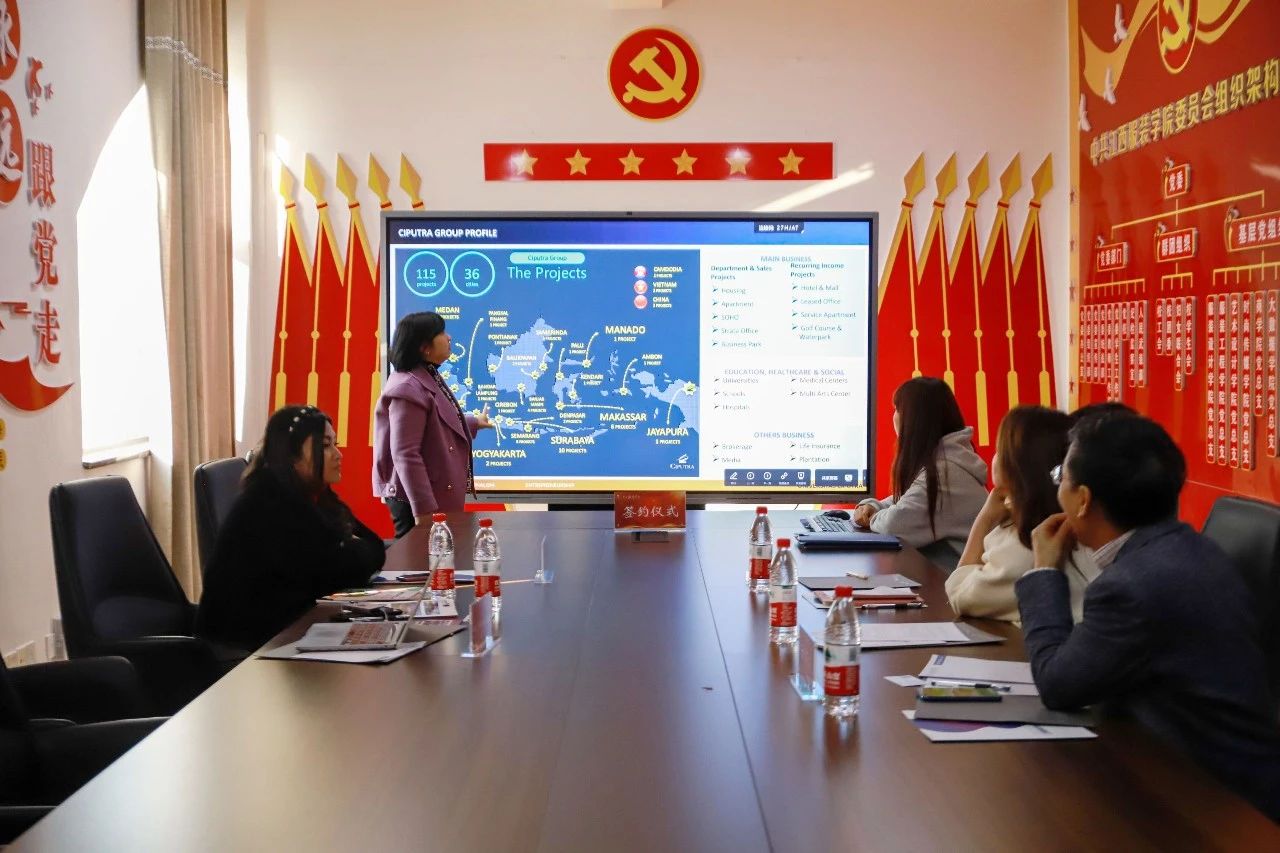仪式在友好而热烈的氛围中展开。洽谈会上,刘有发处长首先对远道而来的西普特拉泗水大学Astrid Kusumowidagdo院长一行表示热烈的欢迎,并简要介绍了江西服装学院的发展历程、办学特色、办学成绩以及在国际合作方面的成果。