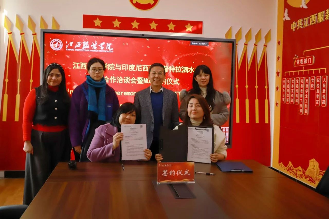 我校与印度尼西亚西普特拉泗水大学合作洽谈会暨MOU签约仪式在行政楼三楼会议室举行。我校服装设计学院副院长罗密出席会议,服装设计学院、国际交流与合作处老师参加会议。会议由国际合作与交流处处长刘有发主持。