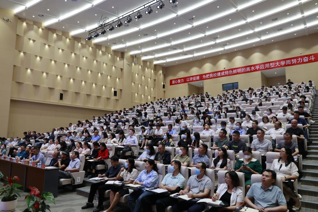薛家宝强调,希望全体师生,以主人翁的姿态,投身于学校本科教育教学审核评估工作之中。只要我们立足新起点,把握新特点,对标新要求,勠力同心、勇担使命、攻坚克难,踔厉奋发,就一定能够高质量完成审核评估各项任务,为把我校建成特色鲜明的高水平应用型大学奠定坚实基础。