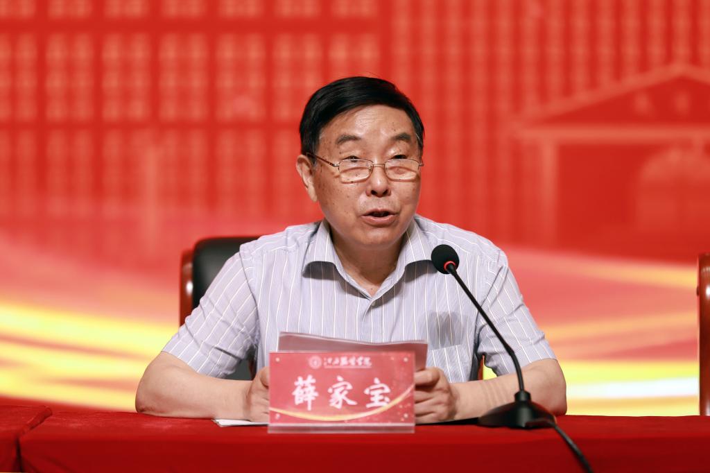 校长薛家宝以《凝心聚力 踔厉奋发 以审核评估工作为契机 助推学校强内涵上层次》为题作审核评估工作动员讲话。他强调了我校实施新一轮审核评估的重要性,详细介绍了审核评估的特点,明确了时间表,画出来路线图,布置了各阶段的迎评促建工作任务。同时,围绕学校高质量完成目标任务,提出四个方面的要求:一是立足新起点,切实提高审核评估重要性的认识;二是把握新特点,切实增强审核评估规律性的理解;三是实现新目标,切实抓好审核评估各阶段的工作;四是对标新要求,全力以赴做好我校审核评估工作。
