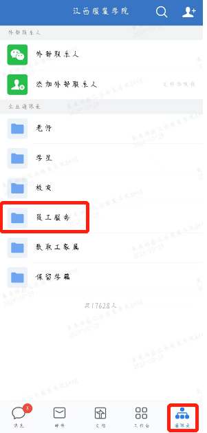 (3) 会话咨询:企业微信--通讯录--员工服务--校园网运维