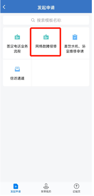 (2) 企微报修:工作台--审批--固定电话业务流程/网络故障报修