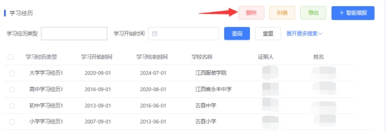 如无高中学习经历,可点击【删除】按钮进行删除。