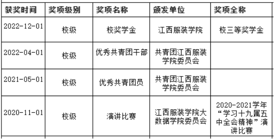 奖学金、荣誉证书、赛事、科研获奖、技能证书信息模板