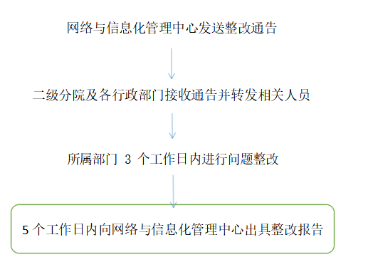 4、在接到整改通知 5 个工作日 内 向网络与信息化管理中心 反馈整改情况。
