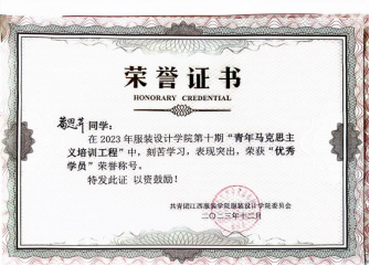 2023—2024年服装设计学院第十期“青年马克思培训工程”荣获“优秀学员”