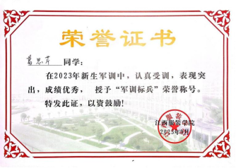 2023—2024年获校级‘军训标兵’称号。